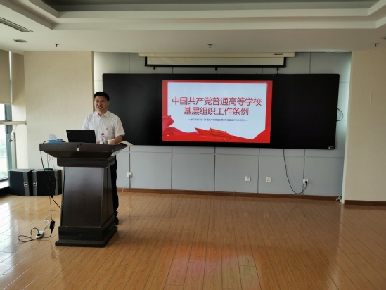 韩忠军首先传达了校党委副书记张国臣关于“贯彻落实《中国共产党普通高等学校基层组织工作条例》(以下简称《条例》)要求,不断提升学校基层党组织建设水平”专题党课的重要精神。韩忠军强调,要将学习《条例》作为一项重要任务,作为支部学习的首要内容,要与党史学习教育有机结合,作为“干实事、解难事、谋大事、创新事、长本事”工作成效的有力参考。韩忠军就《条例》内容进行了具体阐释。