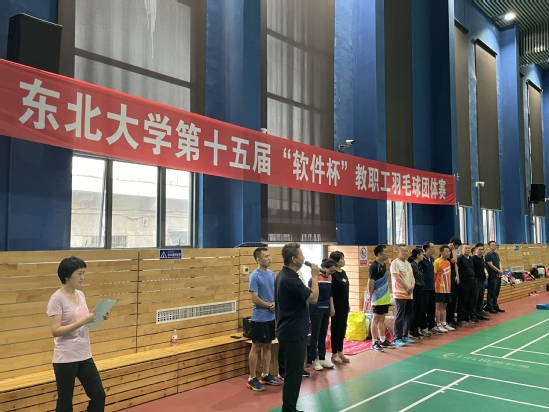 6月26日,东北大学第十五届“软件杯”教职工羽毛球团体赛在南湖校区羽乒馆举行。比赛由东北大学工会主办,软件学院承办,体育部及场馆中心协办。文法学院党委书记隋永强、艺术学院党委书记张哲、理学院党委书记吴政新、资源与土木工程学院党委书记艾国生、材料科学与工程学院党委书记张玉宝、信息科学与工程学院党委书记武建军、软件学院党委书记滕超、直属部门党委书记张兴杰、后勤服务中心党委书记韩子秋,校工会副主席张琦及各参赛单位分工会主席出席开幕式。开幕式由软件学院工会主席宫晓莉主持。