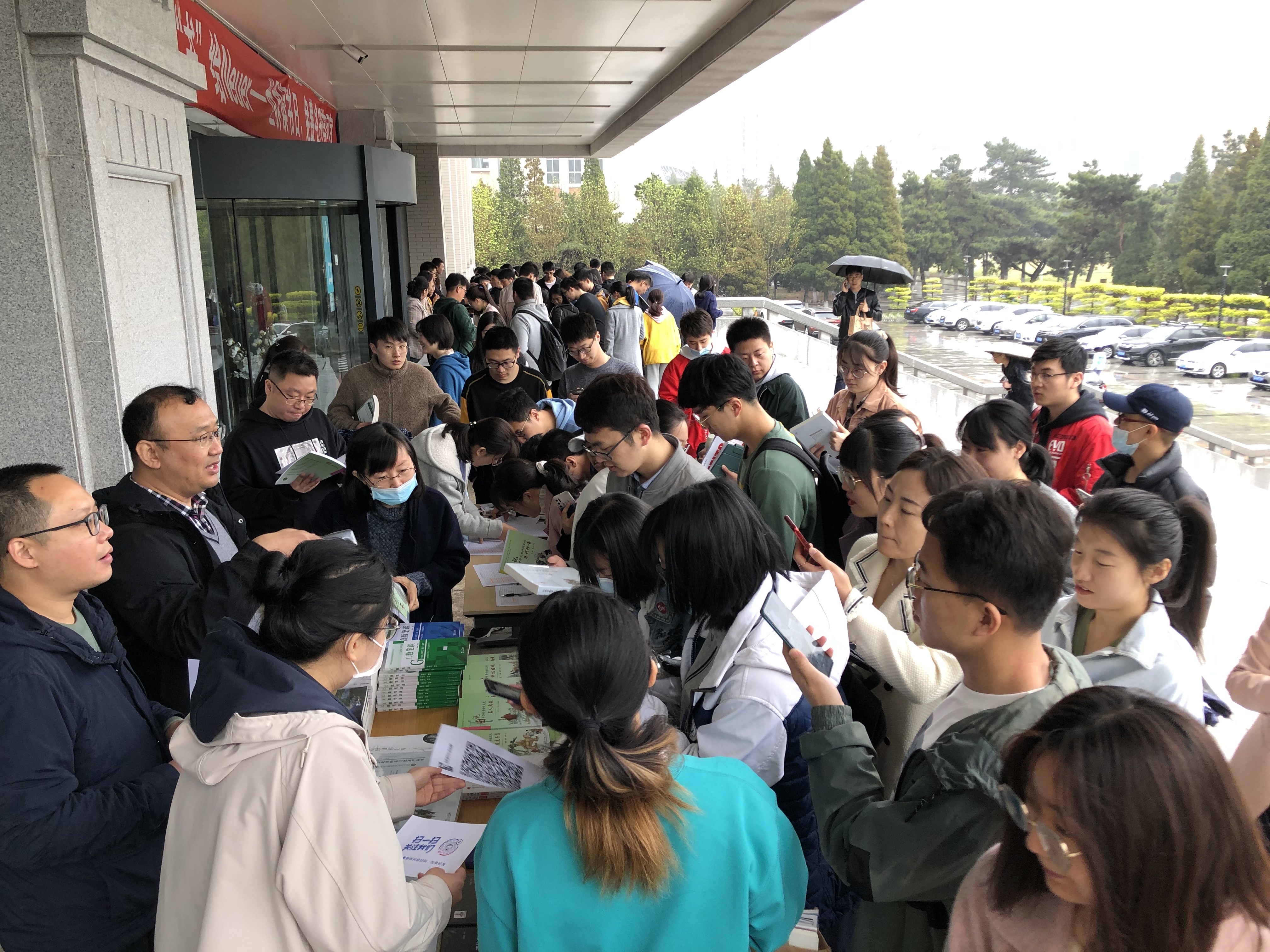 出版社还与图书馆联合开展了免费赠送精品图书活动。赠送的图书包括闻邦椿院士撰写的《科学方法论学习与应用文集》,谢绪恺教授撰写的《高数笔谈》《工数笔谈》;体现中华优秀文化的《东北非物质文化遗产丛书》《图说中华优秀传统文化系列图书》;体现东大情怀的《东大校友创业之路》《西部十年——讲述东北大学研究生支教团的故事》等共计200册。尽管活动现场细雨纷飞,但学生阅读热情不减。