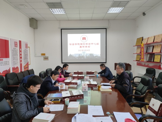学院领导班子成员围绕习近平总书记给人民教育出版社老同志的回信、新时代教育改革评价的相关解读文章、党的十九届五中全会精神的相关理论文章等内容进行了集体学习。