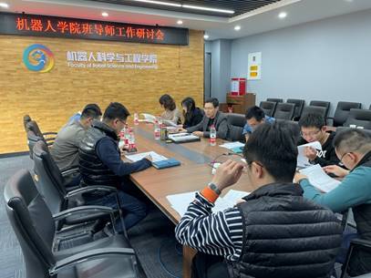 会议介绍了《机器人学院班导师工作管理办法》及其细则,明确了班导师工作的职责和考评的要求。本科生辅导员对本年级各班的学习成绩、班级建设和就业升学等基本情况作了汇报,希望班导师根据班级所处的年级阶段给予针对性的指导和帮助。班导师对一年来的工作开展情况进行了回顾,提出了下一步的工作打算,并就学院2021年度的学生工作提出了建设性意见。