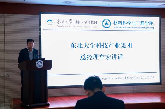 牟宏介绍了东北大学国家大学科技园的建设成果,并对材料科学与工程学院创业实践基地在科技园挂牌成立表示祝贺。牟宏表示,东北大学国家大学科技园致力于发挥市场功能和平台作用,聚焦创新资源集成、科技成果转化、科技企业孵化和创新人才培养,打造全链条科技成果转移转化服务平台。牟宏希望同学们抓住机遇,积极参与创新创业基地建设,主动利用基地的平台功能,勇于尝试、不断学习、不断提高。