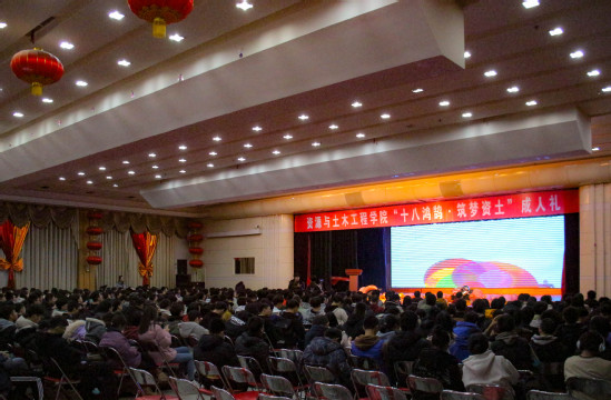 11月25日下午,资源与土木工程学院在学生活动中心多功能厅举办“十八鸿鹄・筑梦资土”2020级本科生成人礼。学院党委书记艾国生、党委副书记兼副院长刘婉婷、家长代表安俊学、2020级班导师代表、辅导员及2020级全体本科生参加活动。典礼通过直播平台实时转播,部分家长线上交流观看。