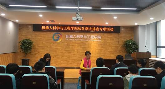 11月4日下午,为维护疫情防控常态化下的学生群体安全稳定,实时掌握学生思想动态,机器人科学与工程学院于建筑学馆B302室开展秋冬季大排查专项活动。学院学生工作办公室全体成员、全体本科生班委参加会议。