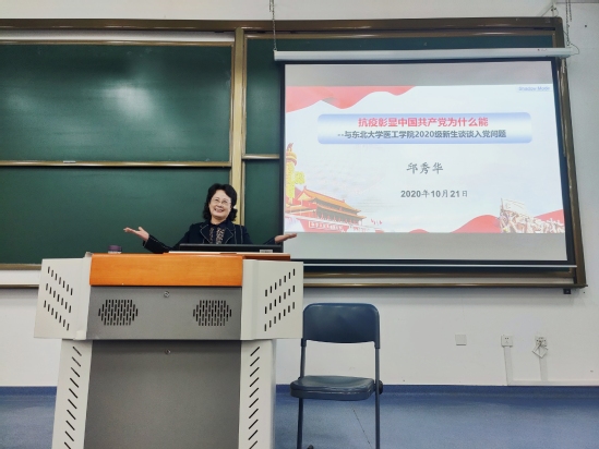 10月21日,医工学院2020级新生入党启蒙教育报告会在浑南校区生命学馆B101室举行。原东北大学思想政治理论课教师、现任东北大学马克思主义学院关工委常务副主任邱秀华教授受邀作专题报告。医工学院党委副书记王帅、学生工作办公室相关老师出席会议。