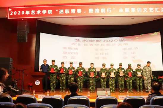 9月25日晚,艺术学院2020级本科生“迷彩青春,藝路前行”军训文艺汇演暨表彰大会在科学馆建龙报告厅举行。