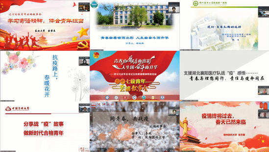 辽宁大学的蒋佳林分享了疫情期间在团中央新媒体工作处工作经历,以大数据的方式展示出当代青年学生的强烈爱国热情,传播时代正能量。雷神山医院感染一科护理小组长、锦州医科大学附属第一医院护士魏来和辽宁对口支援襄阳医疗队成员、辽宁中医药大学博士研究生郑炜东,讲述了在湖北救治病人期间的亲身经历,将医者仁心用最直观的形式展示给同学们,历历如绘、令人敬仰。中国医科大学栾厚奎、沈阳药科大学李政分享了自己作为学生干部组织的多项活动,彰显了学生组织在抗击疫情中的先锋作用。锦州医科大学张艺馨、沈阳医学院于婷分享了普通医学生在疫情期间投身家乡志愿服务的故事,平凡而不渺小、朴实却尽展现担当。