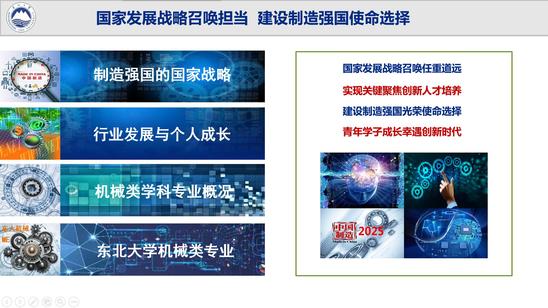 巩亚东从国家战略引入,延伸至目前机械学科概况、学校机械类专业介绍、学生个人的成长与发展等,向广大考生详细介绍了学校机械类专业的历史发展、办学优势、人才培养模式和培养特色等。