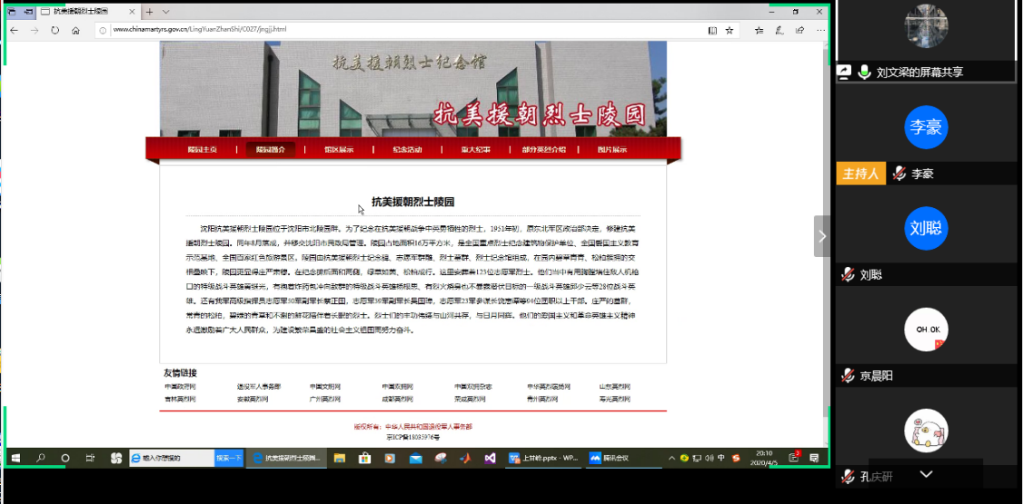 有的学生党支部组织党员通过“中华英烈网”进行“云”祭奠,向烈士献花并留言致敬;有的学生党支部通过网上观展抗美援朝纪念馆、抗美援朝烈士陵园、辽沈战役烈士陵园等,了解纪念馆各个展厅的概况、对发生在抗美援朝、解放战争中的著名战役以及烈士的英雄事迹进行深入学习。党员们在献花留言环节写道“在这个特殊时期,我倍感祖国的强大,是你们的奉献造就了今天的幸福生活,我定牢记使命,不忘初心!”“英雄先烈的伟大牺牲,铸就了中华民族的辉煌灿烂,中华儿女才有幸福的今天!”在特殊时期大家用特殊的方式表达对英烈们的敬意。“云”参观结束后,部分党支部进行座谈讨论,特别向此次在抗击新冠肺炎疫情斗争中献出宝贵生命的医护人员、公安干警、基层干部和志愿者进行深切哀悼,愿逝者安息,生者奋进。同时,党员们利用微博、微信等新媒体寄托哀思、缅怀先烈,还通过重温入党誓词、撰写倡议书等形式号召大家承担大国青年的责任与担当。