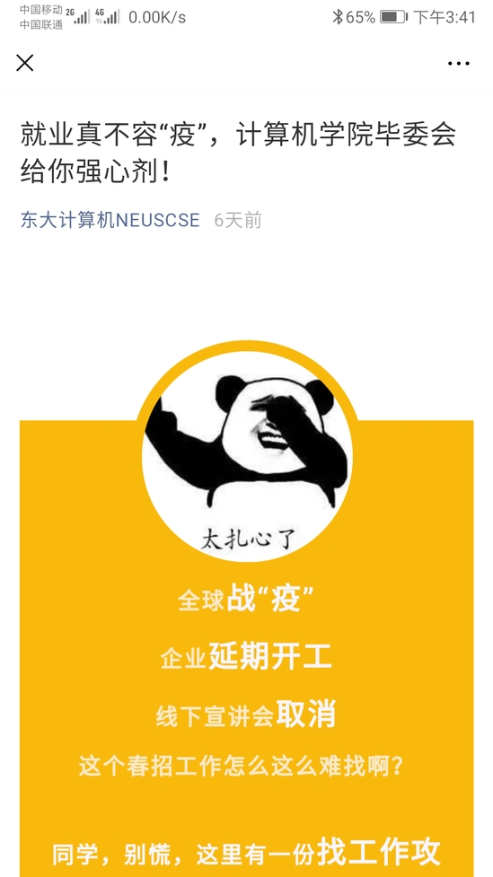 学院党政班子多次召开专题会议,研判就业形势,研讨就业方案,指导学院各党支部发挥专业教师优势开展就业帮扶,充分发挥了党委的领导作用,做好就业工作顶层设计,确保就业工作各项举措有效落实。一是坚持积极的就业教育。在2020届毕业生线上春季就业动员大会上,计算机学院以线上直播的形式向毕业生分析就业新形势,解读就业新政策,鼓励毕业生调整就业心态,积极准备就业。二是坚持科学的就业管理。依托学院就业团队开展深入的就业情况摸排工作,将拟升学、拟留学、拟就业等学生群体细致分类管理和指导,从“一群体一策”实现“一生一策”,靶向管理。三是坚持精细的就业指导。整理和发布学院2019届本科毕业生优秀就业案例集,为毕业生提供就业、考研、留学等各类简历模板和经典案例;依托学院微信公众号推送就业指导系列推文,分享“线上就业”策略、考研策略等;学院本科生党支部推送简历制作主题推文,指导毕业生简历撰写;搭建考研交流平台,邀请往年升学校友分享考研经验,助力考研复试。四是坚持温馨的就业服务。全面摸排经济困难学生和湖北籍学生就业状况,针对性开展“一对一”就业帮扶;开通学院就业咨询热线,公布学院就业指导教师手机、微信、QQ等联络方式,为毕业生提供全天候就业个性化服务。