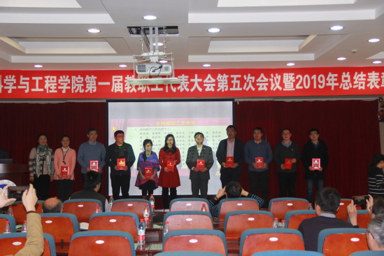 会议展示了2019年度学院教职工获得校级以上奖励情况,并对在学院各项工作中作出积极贡献的教职工进行了表彰。