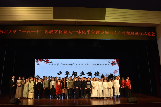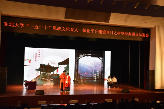 12月18日,由学生工作处主办、机械工程与自动化学院承办的东北大学“一五一十”思政文化育人一体化平台建设项目之中华经典诵读品鉴会在汉卿会堂蔡冠深报告厅举行。辽宁省文化和旅游厅文物管理处处长吴文博、沈阳话剧团演员宝源,校团委副书记张忠英、学生指导服务中心副主任石昌远、机械学院党委副书记兼副院长孙坤、学生工作处相关负责人、机械学院学生工作办公室相关工作人员与全校500余名师生参加本次活动。