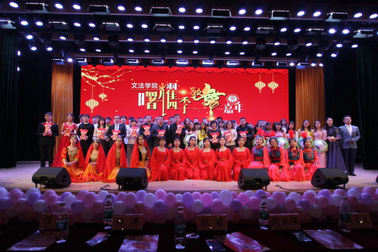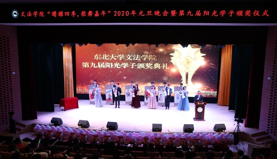 12月19日,文法学院“曙耀四季,歌舞嘉年”2020年元旦晚会暨第九届阳光学子颁奖仪式在浑南校区图书馆报告厅举行。学生工作处副处长徐长文,团委副书记孙涛,学生指导服务中心副主任程宏,创新创业学院副院长王刚,新疆班班主任阿米娜、付新红、林宏磊,文法学院院长张雷,党委书记隋永强,党委副书记兼纪委书记孙宏伟,副院长李丹,党委副书记兼副院长夏风云,学院机关和学生工作办公室相关工作人员出席晚会。