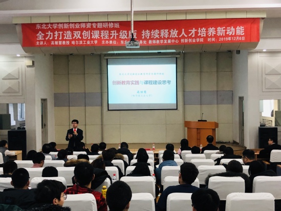 12月6日,由东北大学教务处、教师教学发展中心、工会及创新创业学院联合举办的东北大学创新创业师资专题研修班在南湖校区图书馆报告厅正式开班。教育部创新创业教育指导委员会委员、哈尔滨工业大学创新创业教育委员会主任高继慧受邀作题为“创新教育实践凝华与课程体系建设升华”的主旨报告。创新创业学院常务副院长孙秋野、副院长王刚、副院长黄达,工会副主席张琦以及百余名师生参加本次培训。