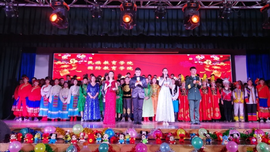12月11日,民族教育学院[国防教育学院]“筑梦·远航”元旦晚会在学生活动中心多功能厅举办。党委统战部常务副部长刘海龙,公安处处长张立志,直属部门党委书记张兴杰,宣传部、团委、学生工作处、学生指导服务中心有关负责人、分管学生工作的党委副书记兼副院长,民族教育学院[国防教育学院]全体师生出席晚会。