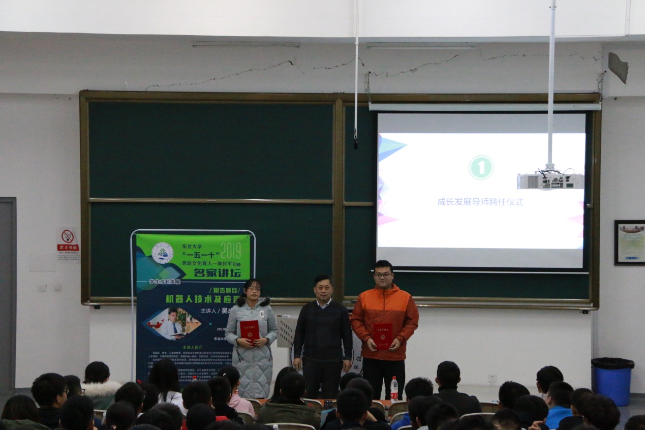 12月4日,机器人科学与工程学院在浑南校区建筑学馆A102室举办“一五一十”思政文化育人一体化平台之名家讲坛暨成长发展导师聘任仪式。学生工作办公室、综合办公室相关老师出席仪式,2018级、2019级全体本科生参会。