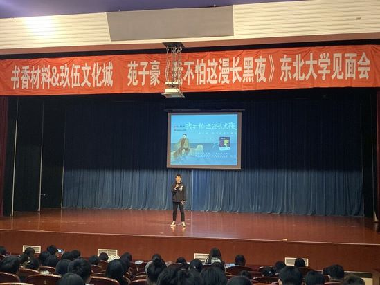 12月2日晚,由东北大学材料科学与工程学院同玖伍文化城联合主办、书香社承办的苑子豪《我不怕这漫长黑夜》青年作家见面会在汉卿会堂蔡冠深报告厅举办。