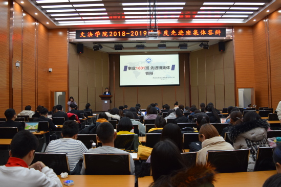 各答辩班级围绕班集体建设,就班级基本情况、思想建设、学风引领、寝室风采等多方面内容进行特色展示,富有创意的班级活动、丰富多彩的社会实践活动、认真负责的量化考评、杰出的文体活动成绩,展现的是一个个优秀集体成长的过程,更展示着文法学子积极向上的精神风貌。