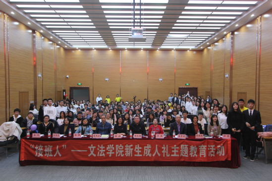 11月20日,文法学院2019年“接班人”——新生成人礼主题教育活动在浑南校区文管学馆B230室举行。文法学院党委书记隋永强、校学生工作处副处长韩磊、学院党委副书记兼副院长夏风云,部分班导师,学生工作办公室相关人员及2019级全体新生出席活动。