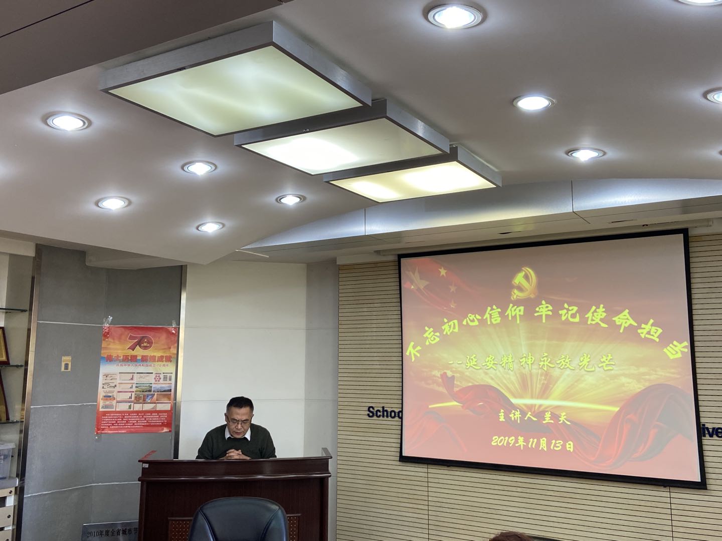 11月13日,沈河校区管委会党员开展了“不忘初心、牢记使命”主题教育专题党课。沈河校区管委会主任兰天以“不忘初心信仰 牢记使命担当——延安精神永放光芒”为题,为管委会全体党员讲党课。