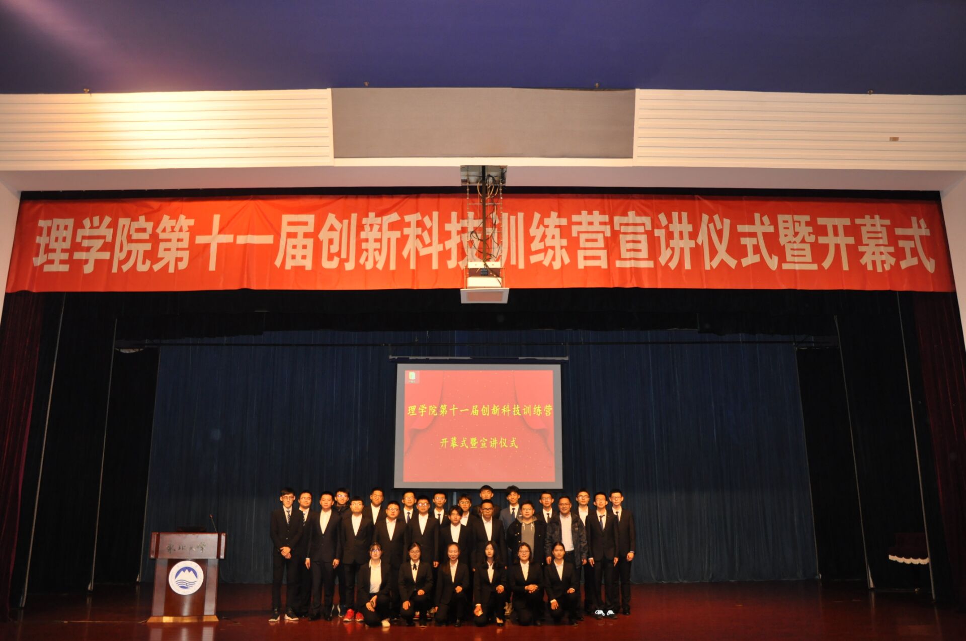 10月30日晚,理学院第十一届创新科技训练营开营宣讲会在汉卿会堂蔡冠深报告厅举行。东北大学创新创业学院副院长王刚、学院党委副书记兼副院长王业及学生办公室相关负责人,400余学院学生出席开营仪式。