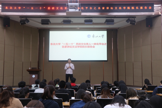 10月23日,文法学院在文管学馆B230室举行东北大学“一五一十”思政文化育人一体化平台之名家讲坛。文法学院院长张雷,党委副书记兼副院长夏风云,学生工作办公室负责人及2019级全体本科生参与报告会。