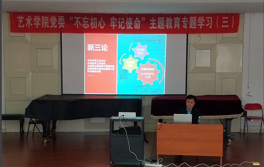 10月23日下午,艺术学院党委在双馨苑音乐欣赏教室举行了“百年变局视域——中美关系经贸摩擦”专题讲座,“不忘初心、牢记使命”主题教育第三场讲座暨学习研讨活动。研究生院副院长兼党委研工部部长丁义浩教授受邀作报告。艺术学院全体教职工党员和学生党员与会。