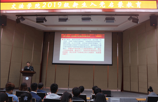 10月12日中午,文法学院2019级新生入党启蒙教育在文管学馆B230室举行,文法学院党委书记隋永强、党委副书记兼副院长夏风云、机关工作人员及2019级全体学生出席本次活动。