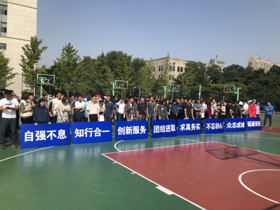 9月20日下午,由于机关工会举办的2019年东北大学“中行杯”机关趣味运动会在二舍篮球场举行。机关党委书记初青松致开幕词,校工会主席沙海影宣布运动会开幕。