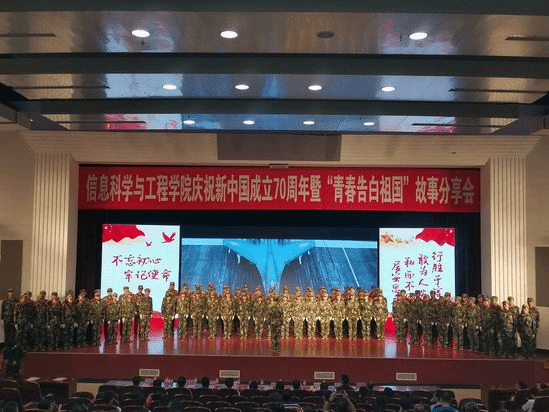 9月25日下午,信息科学与工程学院在汉卿会堂蔡冠深报告厅举行庆祝新中国成立70周年暨“青春告白祖国”故事分享会。巡查工作办公室主任王剑、学生工作处处长马天威、创新创业学院常务副院长孙秋野,宣传部、团委、研究生院、人事处、学生指导服务中心等相关部门负责人,学院党委书记武建军及师生代表参加分享会。