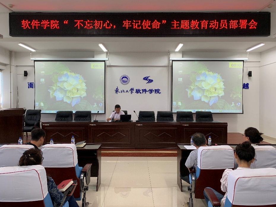 9月18日下午,软件学院召开“不忘初心、牢记使命”主题教育部署会,对全院开展主题教育活动进行动员部署,全体教职工党员参加。