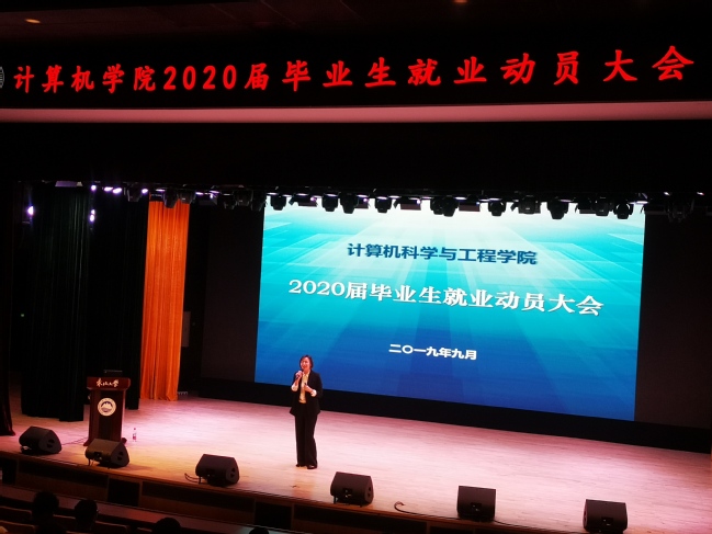 9月19日下午,计算机科学与工程学院在浑南校区图书馆报告厅举办2020届毕业生就业动员会。学院学生工作办公室、教学科研办公室相关负责人,及全体2020届本科毕业生参会。