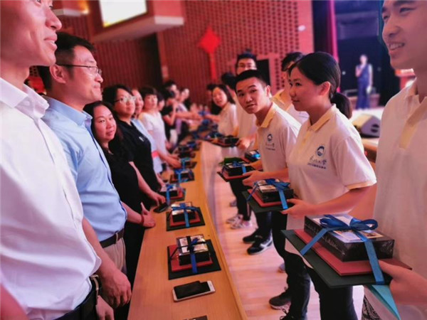 与会老师为2019届毕业生们颁发了毕业证书、学位证书和毕业礼物。