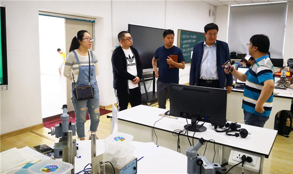 近日,艺术学院环境设计系与视觉传达设计系党支部赴理学院物理实验中心参观学习,开展“跨专业经验交流,促实验室规范化建设”主题党日活动。在理学院物理实验中心主任、物理系党支部书记王旗老师的带领下,支部教师党员参观了理学院物理实验中心的各个物理实验室,观摩了正在进行实验研究的学生操作。王旗介绍了我校“新工科”背景下的“以学生为主题,以教师为主导”的大学物理实验教学,并介绍了艺术专业教师较为陌生的部分新增实验仪器。