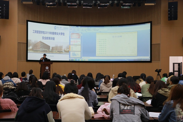 4月12日,工商管理学院在浑南校区文管学馆B450室举办2019年春季女大学生安全教育讲座,东北大学公安处秩序科科长范智勇应邀作为主讲嘉宾为同学们作报告。工商管理学院党委副书记兼副院长严立宁,各年级辅导员,包含本科生、研究生在内的共计150余名女大学生参加讲座。