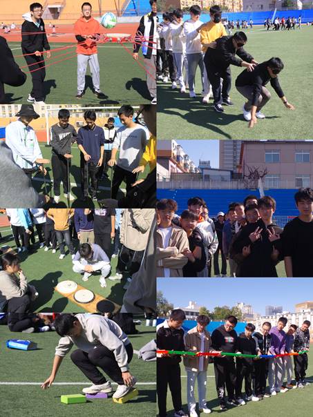 比赛包含团体素拓赛、十人大接力和趣味田径赛等形式,进行班级团体积分赛。比赛中,学生间互相鼓励、配合默契、积极完成各项任务,现场气氛热烈。