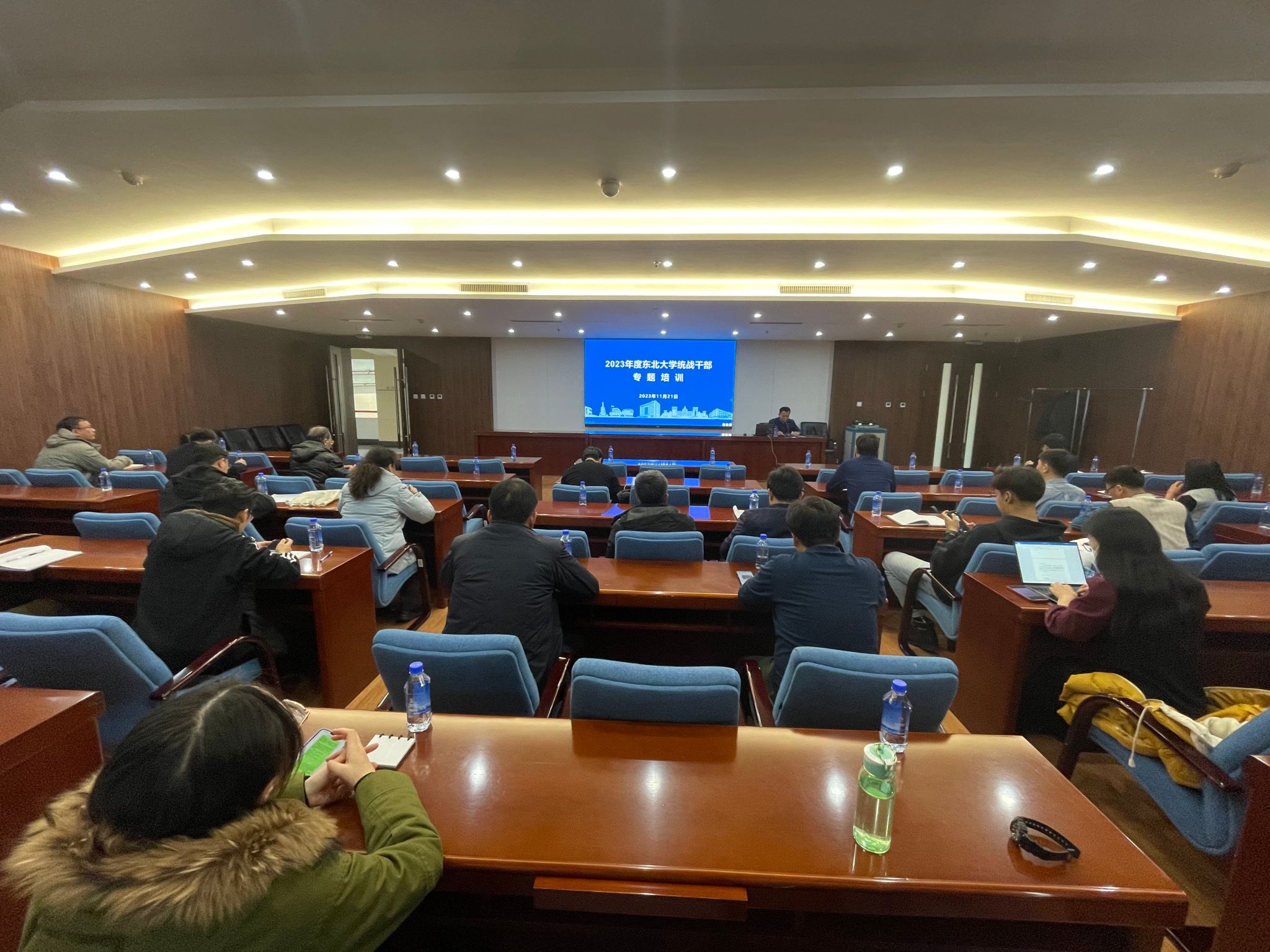 11月21日下午,学校在汉卿会堂402室举办2023年度东北大学统战干部专题培训,深入学习贯彻习近平总书记重要回信精神和习近平总书记关于做好新时代党的统一战线工作的重要思想,进一步加强统战干部队伍建设,提升统战干部政策水平、理论修养和管理能力。各分党委(直属党总支)统战委员、统战工作联络员等40余人参加培训。
