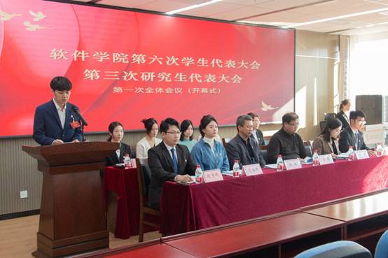 18日,软件学院第六次学生代表大会、第三次研究生代表大会开幕式举行。软件学院党委书记滕超,软件学院学生工作办公室相关人员出席会议。