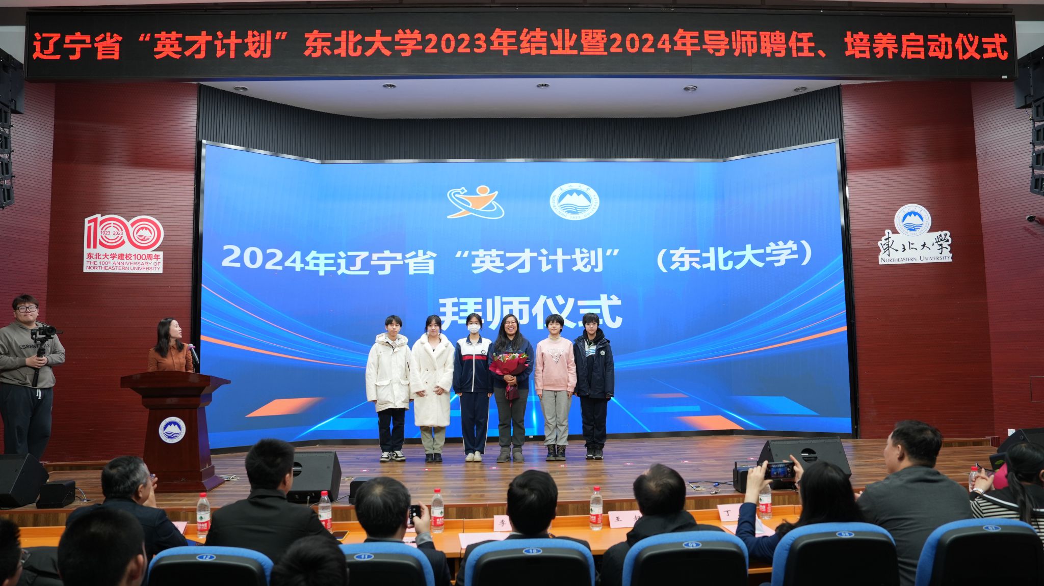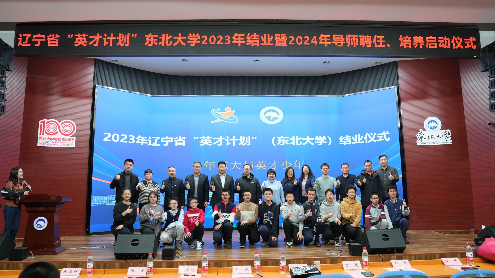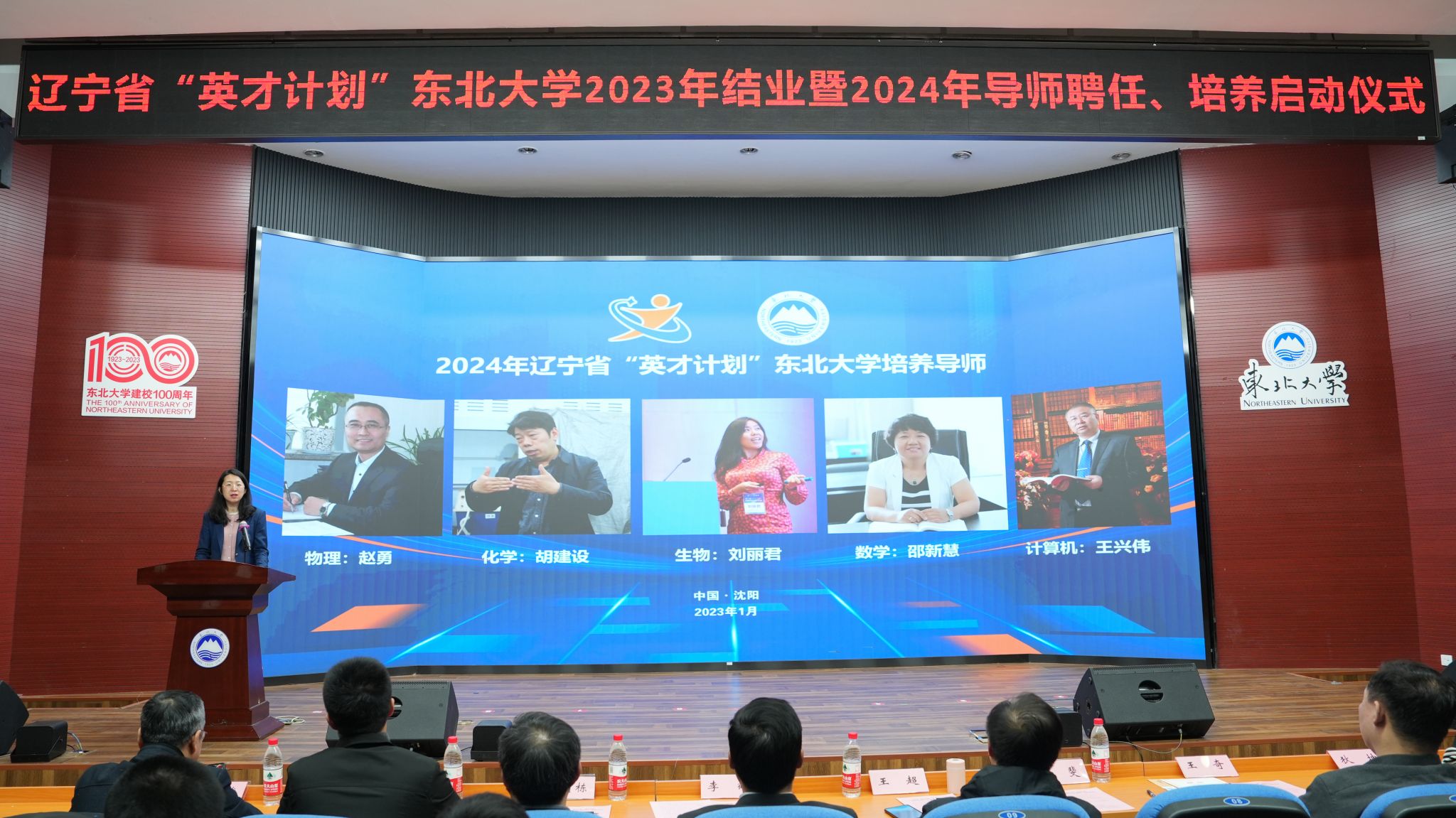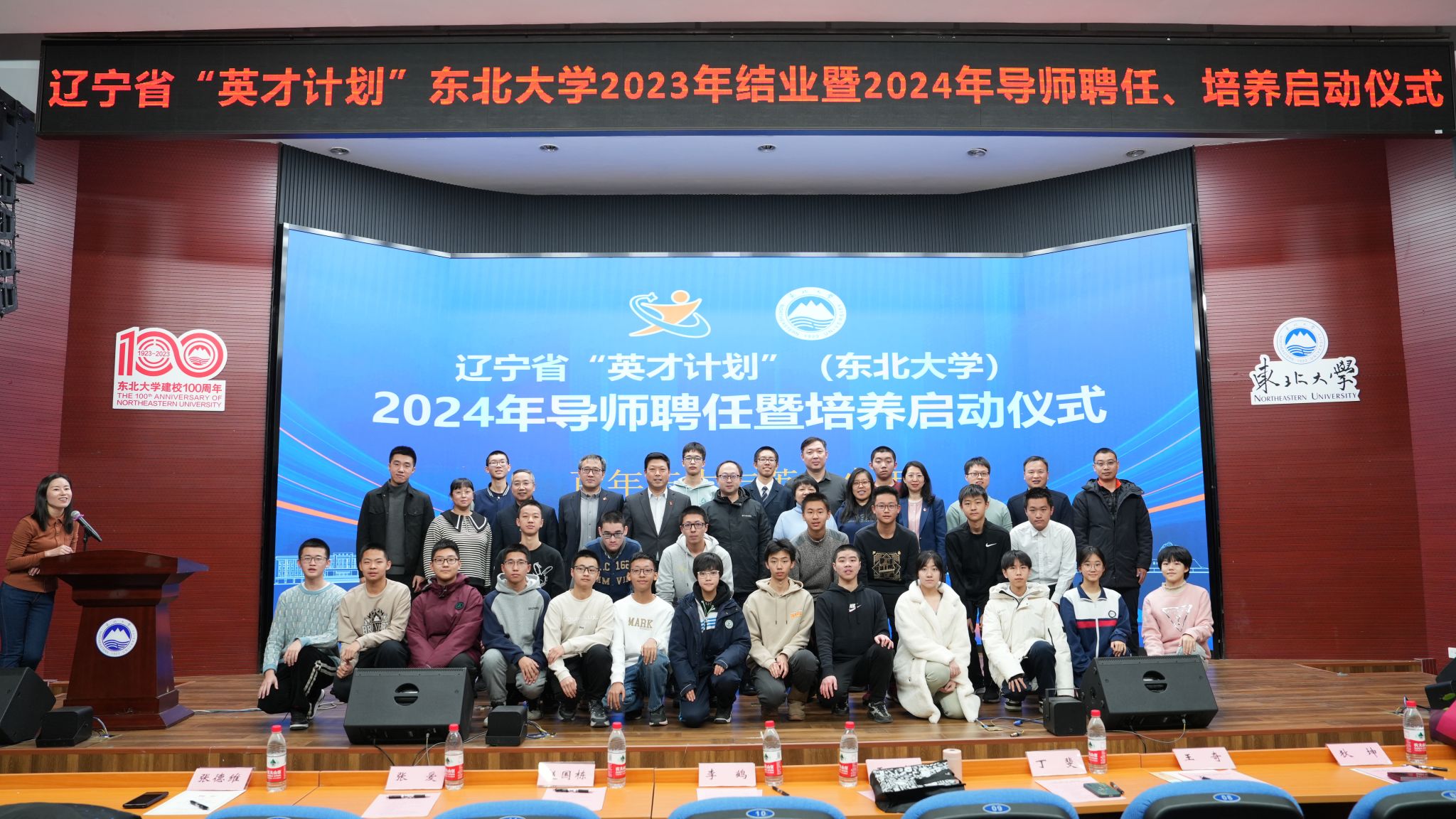 1月13日,辽宁省“英才计划”(东北大学)2023年结业、2024年培养启动仪式在东北大学南湖校区科学馆201建龙学术报告厅举行。东北育才学校副校长王超、辽宁省科技馆科技活动业务主管丁斐以及来自各参与中学的教师代表,辽宁省“英才计划”(东北大学)导师代表邵新慧、刘丽君、周炯、陈剑、李雪刚,东北大学创新创业学院常务副院长李鹤以及辽宁省“英才计划”(东北大学)2023年结业学员、2024年新入选学员出席仪式。