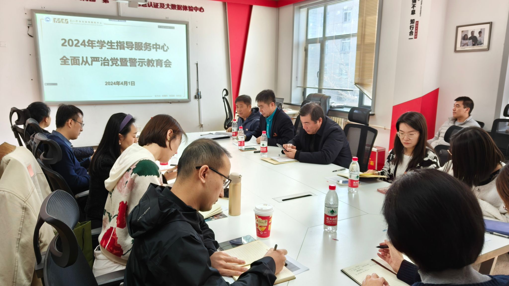 4月1日,学生指导服务中心在南湖校区学生活动中心213室召开2024年全面从严治党暨警示教育会。部门全体同志参加会议,副主任石昌远主持会议。
