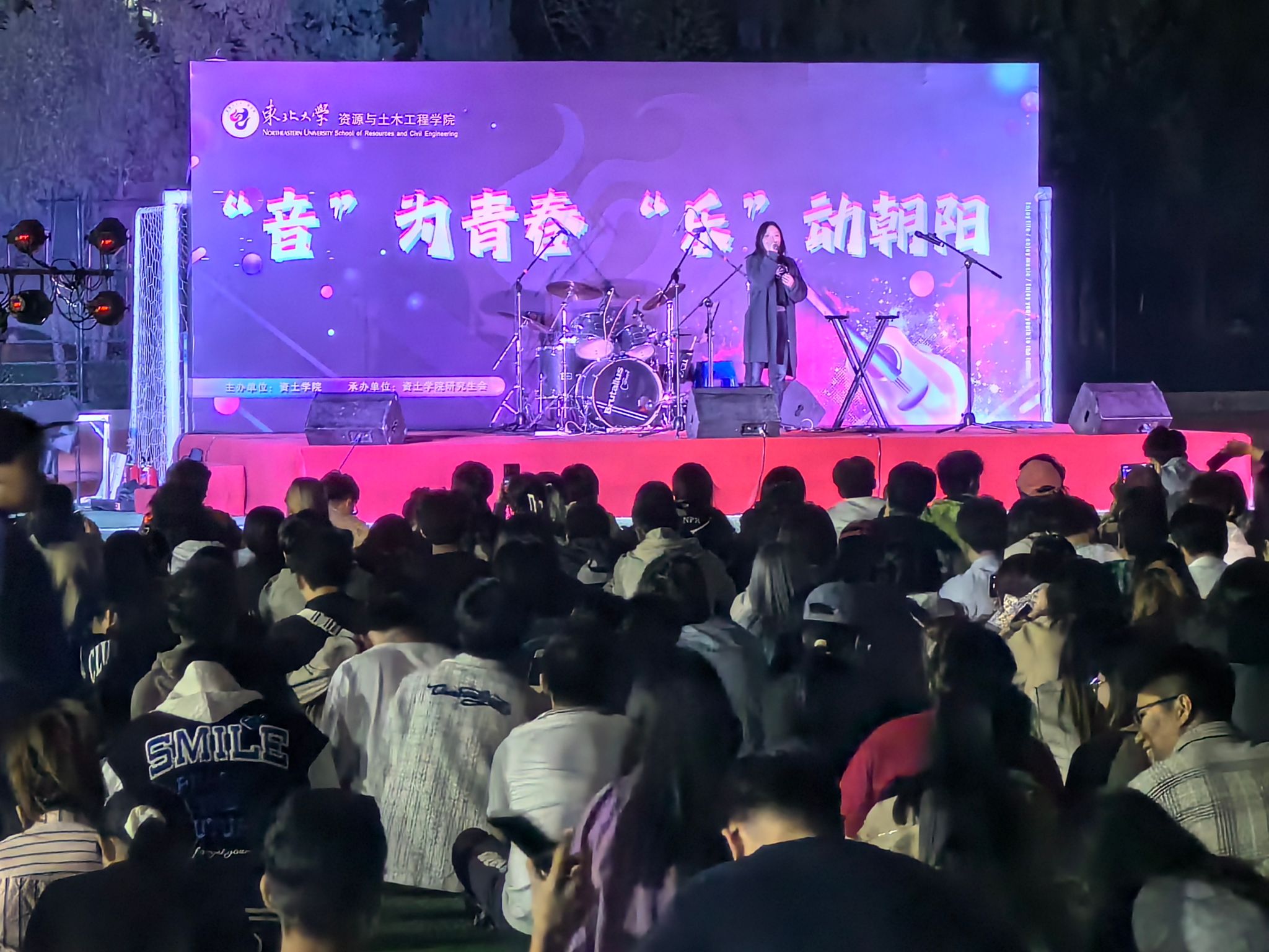 4月26日晚,资土学院“‘音’为青春,‘乐’动朝阳”主题草地音乐节在南湖校区五五体育场举办。此次草地音乐节由资土学院研究生会主办,共吸引千余名师生到场观看。