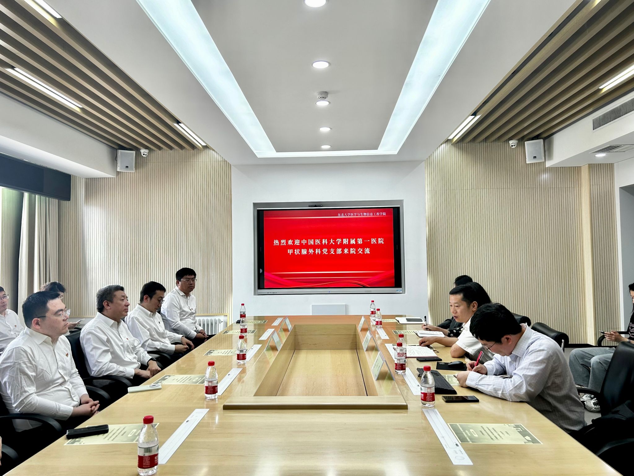 5月25日上午,中国医科大学附属第一医院甲状腺外科党支部一行到医工学院交流,共同开展党日活动。中国医科大学附属第一医院副院长张浩、甲状腺外科党支部书记王志宏,医工学院党委书记刘海龙、副院长马贺、党委委员鲍楠和各支部党员代表参加活动。