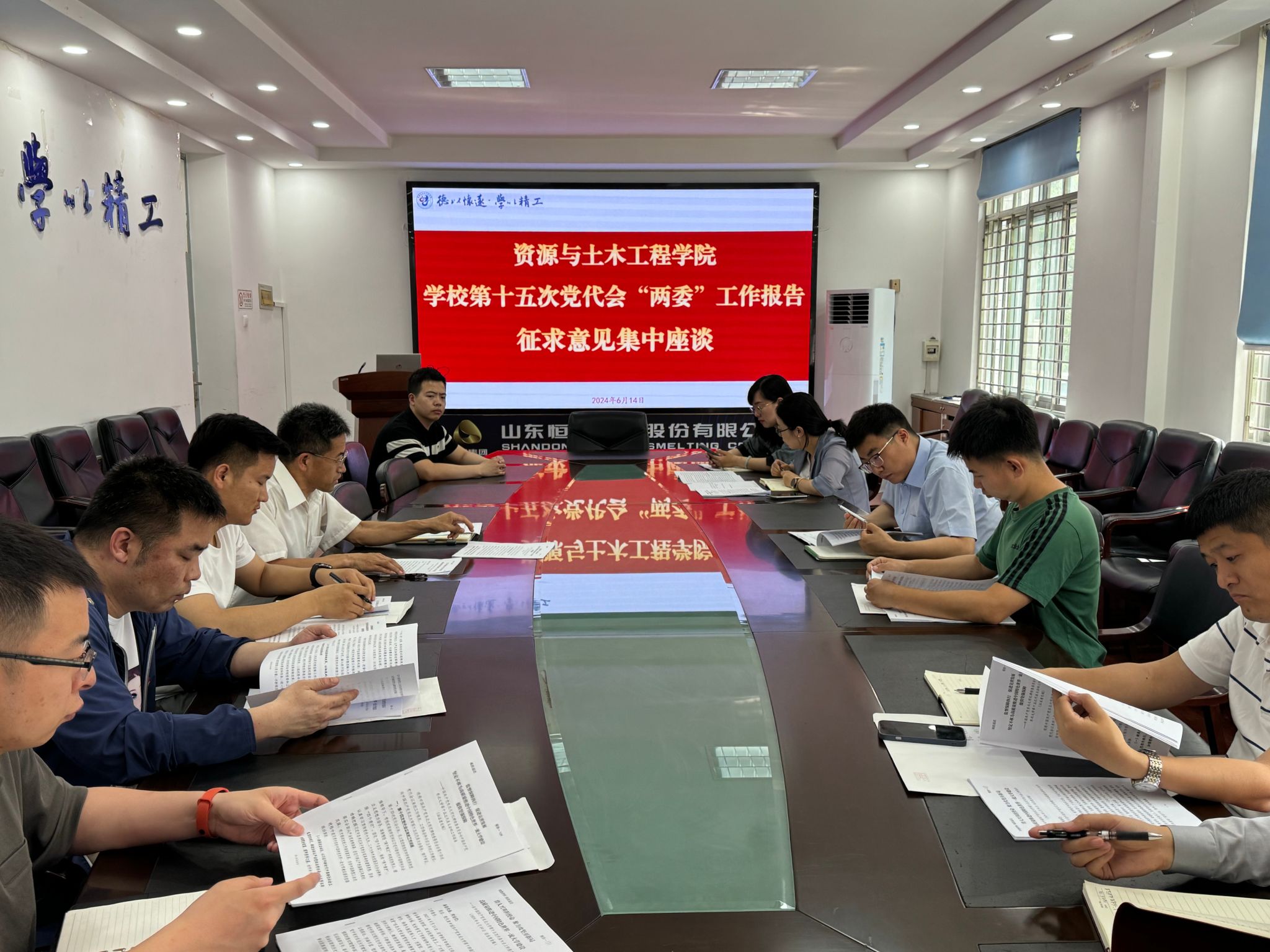 6月14日,中国共产党东北大学第十五次代表大会“两委”工作报告征求意见集中座谈会在采矿学馆227室召开。各教工党支部代表、支部书记参加座谈,会议由学院党委书记艾国生主持。