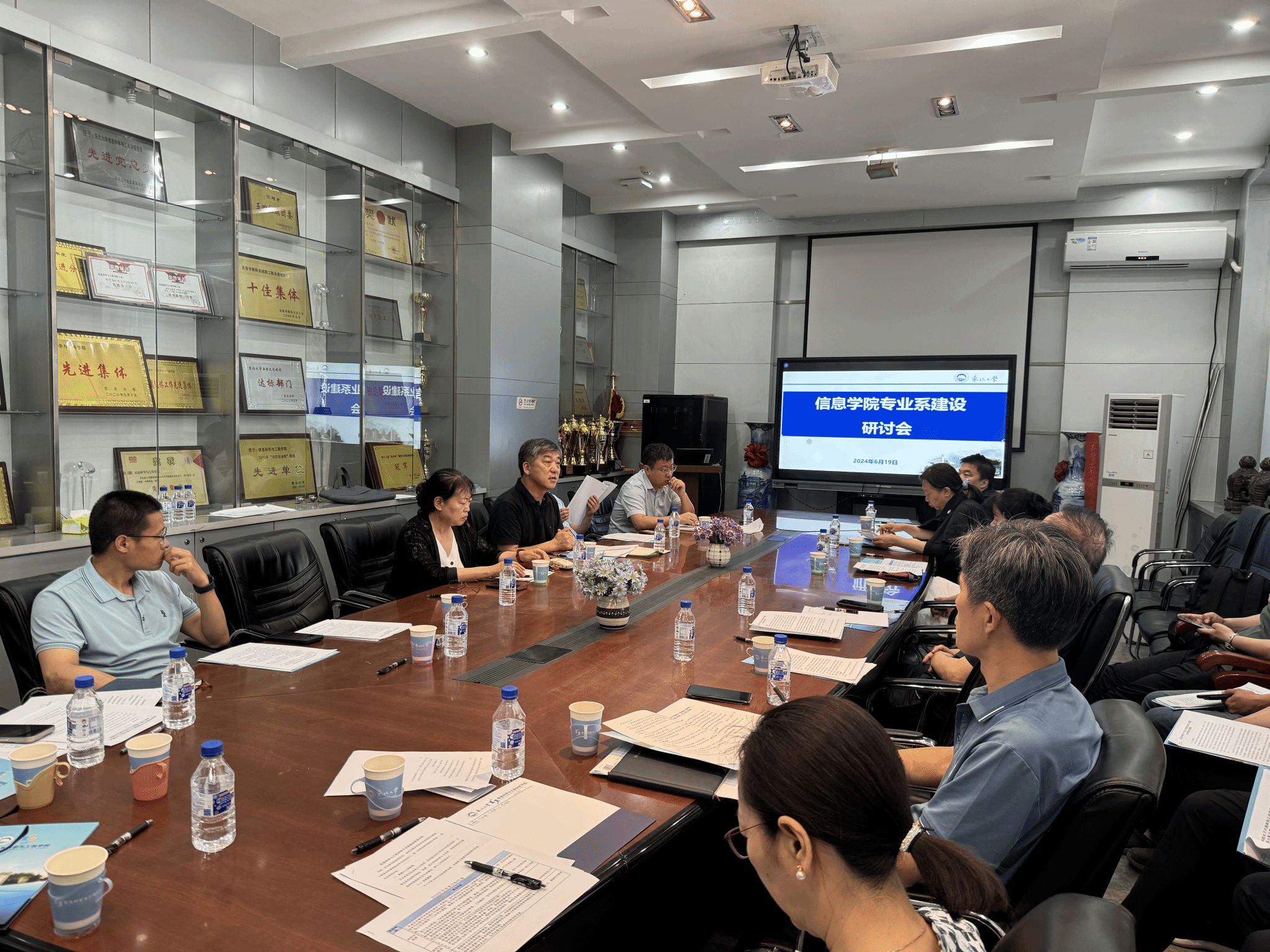 6月20日,信息学院在信息学馆228室召开专业系建设研讨会,学院领导班子成员、各专业系负责人参加。