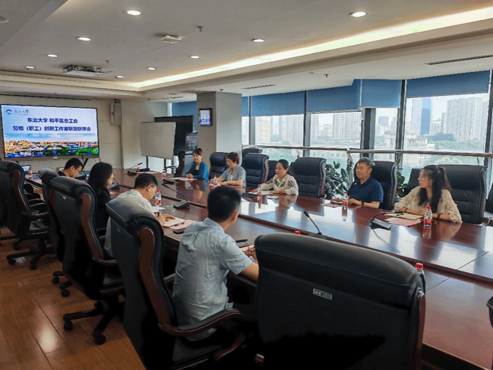 近日,东北大学与和平区总工会劳模(职工)创新工作室联盟联席会在南湖校区主楼710室召开,和平区政协副主席、区总工会主席苏俊斌一行6人出席会议,校工会主席沙海影、校工会副主席孟庆旺,东北大学劳模创新工作室工作人员参加会议。会议由校工会副主席张琦主持。