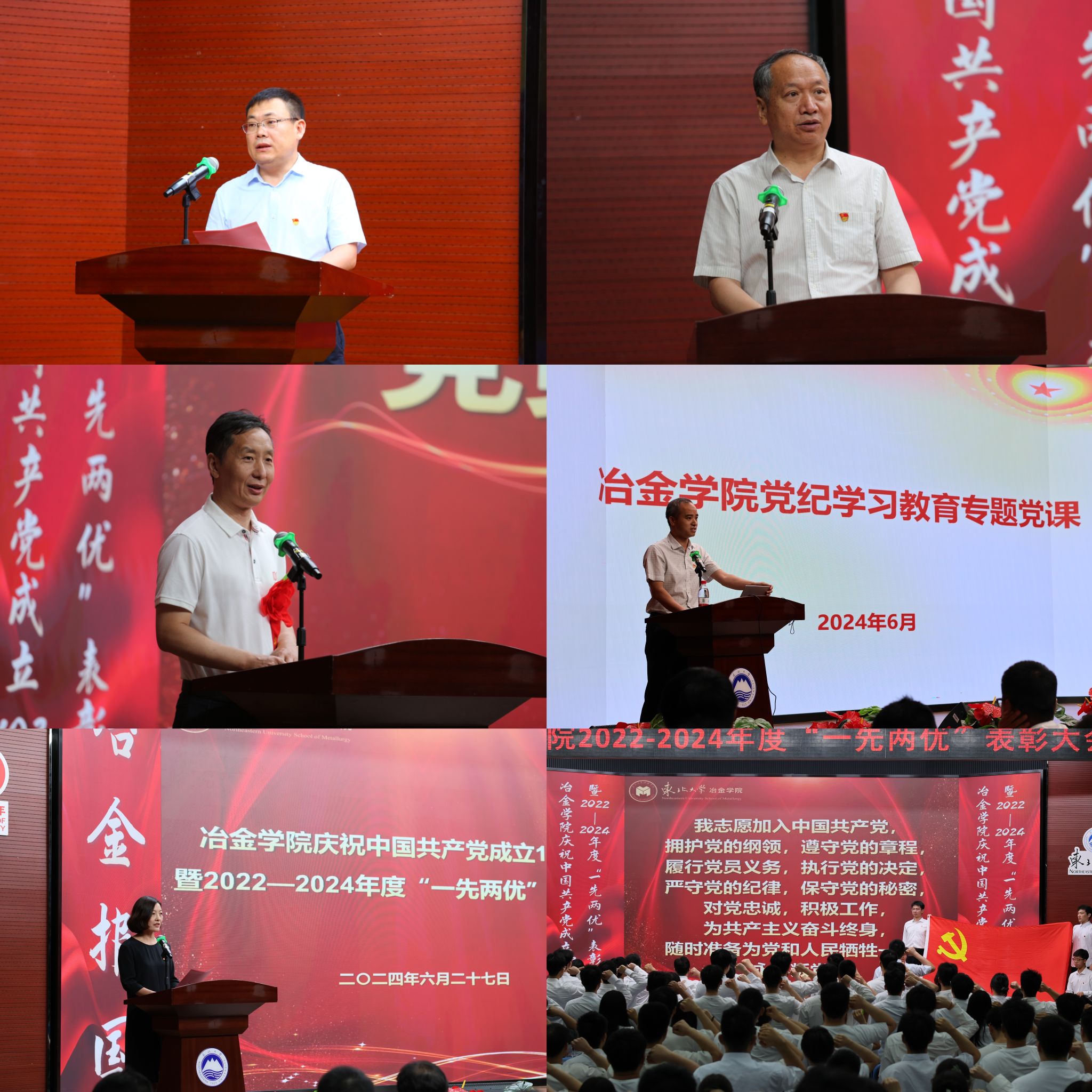 为学习贯彻党的二十大精神和习近平总书记给东北大学全体师生重要回信精神,深化党纪学习教育实效,6月27日,冶金学院党委在科学馆建龙报告厅举行庆祝中国共产党成立103周年暨2022—2024年度“一先两优”表彰大会。冶金学院领导班子成员、党委委员和各支部师生党员出席活动,会议由冶金学院党委副书记、副院长(兼)赵丽娜主持。