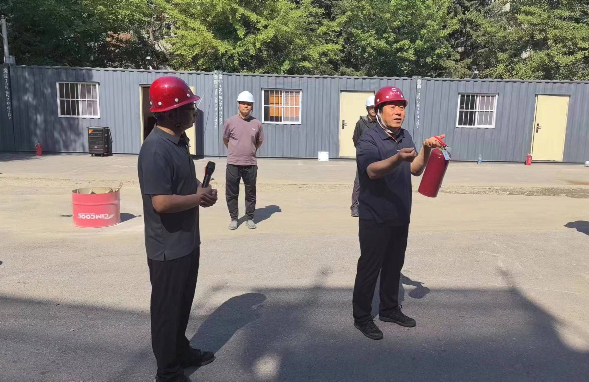 本次演练以“加强消防安全四个能力建设”为主题,公安处徐兴涛老师讲解了常见消防设施器材的使用与管理方式,对灭火器“提、拔、握、压”4个使用步骤进行示范教学,指导工人进行实地操作,模拟火灾救援的全过程。