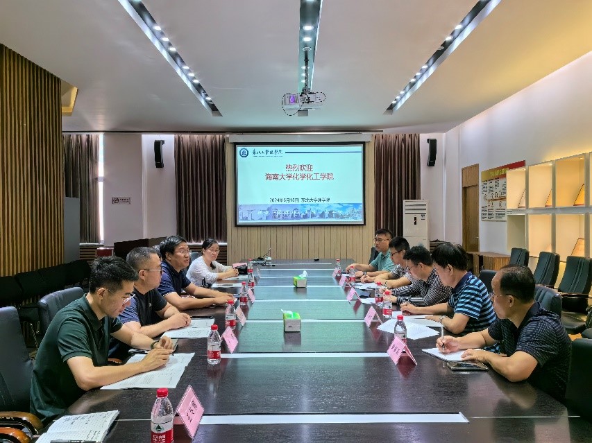 6月18日上午,海南大学化学化工学院副院长李满荣一行到理学院围绕本科教学工作进行调研交流。理学院副院长王旗,化学系副主任韩义德、王军、宋禹等参加座谈。
