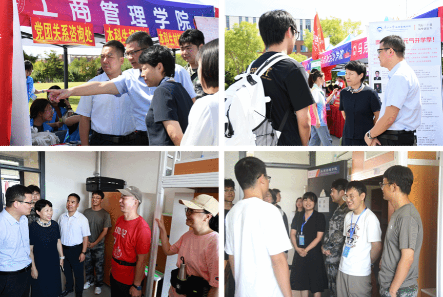 31日上午,院长蒋忠中,学院党委书记任丽,学院党委副书记、副院长(兼)吕昫光,班导师代表李亚宁、刘佳宁、吕林祥以及学生工作办公室全体成员在迎新现场迎接新生,并与新生及家长亲切交流。随后,学院领导与班导师们深入寝室走访看望新生及家长,详细询问新生的报到进展、入校需求以及新生们的专业兴趣等,并就新生和家长们感兴趣的问题进行答疑解惑。