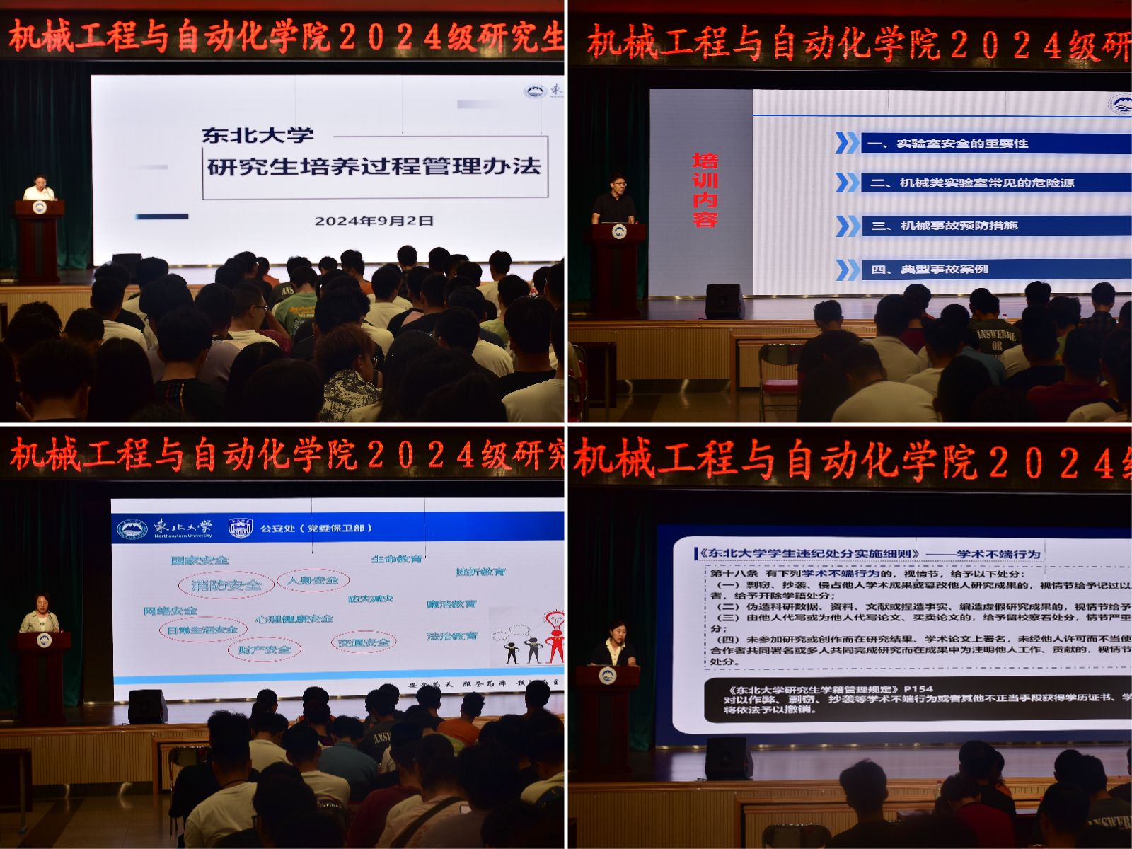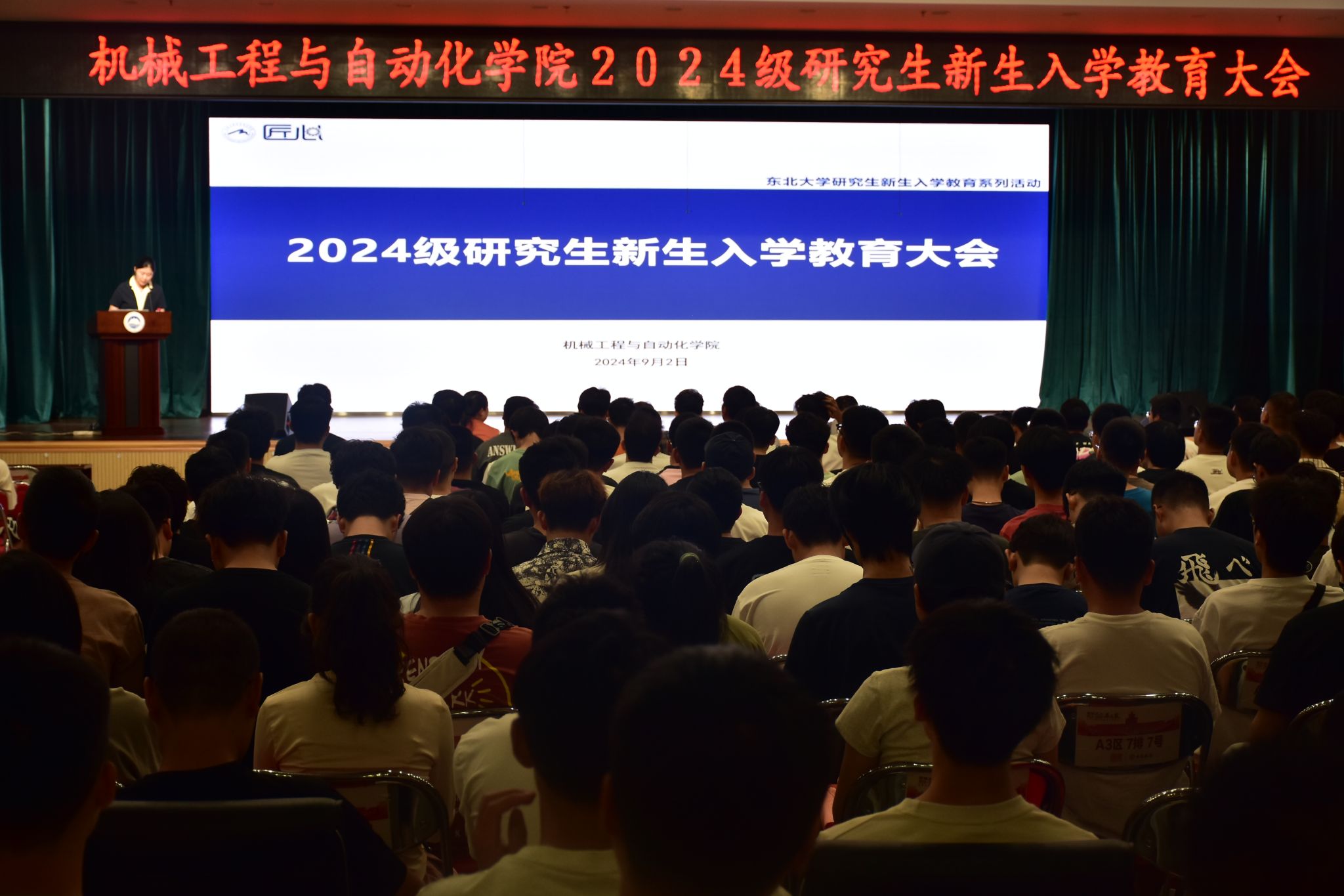 9月2日,机械工程与自动化学院2024级研究生新生入学教育大会在大学生活动中心多功能报告厅举行。学院执行院长于天彪,党委副书记、副院长(兼)孙坤,副院长杨建宇,东北大学公安处、学院学生工作办公室、实验中心、教学科研办公室相关负责人以及全体2024级研究生新生参加大会。